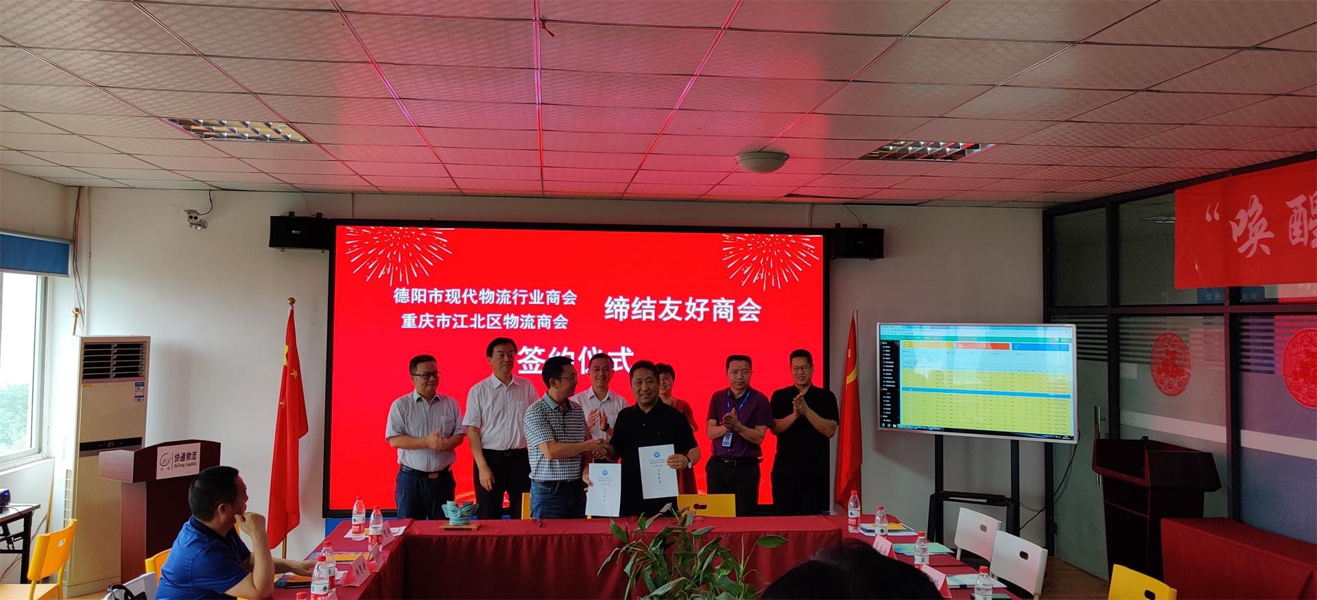 2020年6月11日,由四川省德陽市工商聯(lián)和重慶市江北區(qū)工商聯(lián)搭橋,德陽現(xiàn)代物流商會(huì)和江北區(qū)物流商會(huì)在江北區(qū)物流商會(huì)常務(wù)副會(huì)長(zhǎng)單位(重慶協(xié)通國(guó)際物流有限公司)舉行了締結(jié)友好商會(huì)簽約儀式。