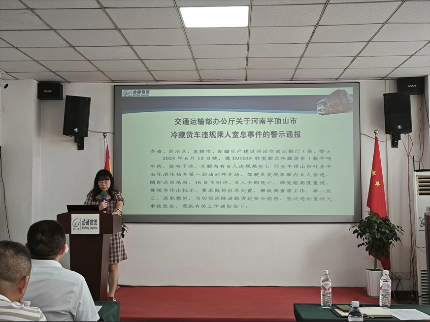 2024年7月5日,重慶協(xié)通國際物流有限公司月度員工安全教育培訓(xùn)會(huì)在公司三樓會(huì)議室召開,公司總經(jīng)理唐云忠主持會(huì)議并講話。