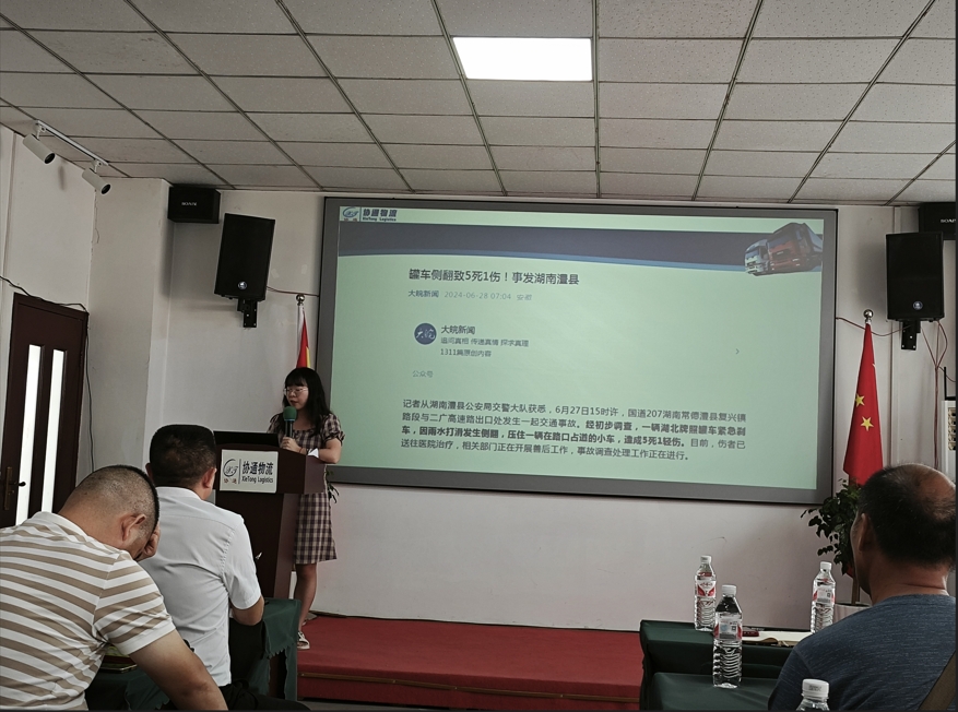 安全部負(fù)責(zé)人唐堯講話,傳達(dá)交通運(yùn)輸部辦公廳關(guān)于河南平頂山市冷藏貨車違規(guī)乘人窒息事件的警示通報(bào);傳達(dá)渝交便函〔2024〕1103 號(hào)重慶市交通運(yùn)輸委員會(huì)關(guān)于印發(fā)《重點(diǎn)道路運(yùn)輸車輛異常駐車報(bào)警處置工作規(guī)范(試行)》的通知;傳達(dá)渝北道運(yùn)〔2024〕35號(hào)重慶市渝北區(qū)道路運(yùn)輸事務(wù)中心關(guān)于印發(fā)渝北區(qū)道路運(yùn)輸行業(yè)安全生產(chǎn)治本攻堅(jiān)三年行動(dòng)方案(2024—2026年)的通知;傳達(dá)湖南澧縣6.27交通事故案例;渝北道運(yùn)〔2024〕37號(hào)重慶市渝北區(qū)道路運(yùn)輸事務(wù)中心關(guān)于“7·2 ”南川區(qū)道路交通事故的警示通報(bào)等文件精神,要求全體員工認(rèn)真按照上級(jí)文件精神做好安全生產(chǎn)各項(xiàng)工作。