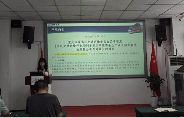 會(huì)議首先由安全部負(fù)責(zé)人唐堯講話,傳達(dá)渝北道運(yùn)〔2024〕39號(hào)重慶市渝北區(qū)道路運(yùn)輸事務(wù)中心關(guān)于行業(yè)安全運(yùn)行趨勢(shì)分析及風(fēng)險(xiǎn)防范的通報(bào)(2024年3季度);傳達(dá)渝交便函〔2024〕1275 號(hào)重慶市交通運(yùn)輸委員會(huì)關(guān)于開展夏季道路運(yùn)輸安全生產(chǎn)專項(xiàng)行動(dòng)的通知;傳達(dá)重慶市交通運(yùn)輸委員會(huì)關(guān)于深刻汲取陜西省柞水縣高速公路橋梁垮塌災(zāi)害教訓(xùn)切實(shí)加強(qiáng)汛期地質(zhì)災(zāi)害防范應(yīng)對(duì)工作的通知;傳達(dá)渝北交安〔2024〕43號(hào)重慶市渝北區(qū)交通運(yùn)輸委員會(huì)關(guān)于印發(fā)《全區(qū)交通運(yùn)輸行業(yè)2024年第三季度安全生產(chǎn)及自然災(zāi)害防治趨勢(shì)分析與對(duì)策》的通知;傳達(dá)渝北防辦〔2024〕24號(hào)重慶市渝北區(qū)消防安全委員會(huì)辦公室轉(zhuǎn)發(fā)國家消防救援局關(guān)于深刻汲取四川自貢“7· 17”火災(zāi)教訓(xùn)切實(shí)加強(qiáng)當(dāng)前消防安全工作的緊急通知;傳達(dá)渝減辦〔2024]28號(hào)重慶市減災(zāi)委員會(huì)辦公室重慶市安全生產(chǎn)委員會(huì)辦公室關(guān)于深入貫徹落實(shí)習(xí)近平總書記重要指示精神汲取教訓(xùn)毫不松懈抓好汛期災(zāi)害防范應(yīng)對(duì)工作的緊急通知;傳達(dá)渝北道運(yùn)〔2024〕38號(hào)重慶市渝北區(qū)道路運(yùn)輸事務(wù)中心關(guān)于印發(fā)道路運(yùn)輸企業(yè)和城市客運(yùn)企業(yè)安全生產(chǎn)重大事故隱患判定標(biāo)準(zhǔn)(試行)宣貫培訓(xùn)方案的通知等文件精神,要求全體員工認(rèn)真按照上級(jí)文件精神做好安全生產(chǎn)各項(xiàng)工作。