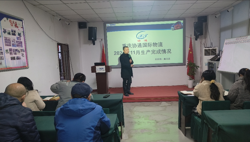 20241214重慶協(xié)通國(guó)際物流有限公司月度員工安全教育培訓(xùn)會(huì)在公司三樓會(huì)議室召開,公司總經(jīng)理唐云忠主持會(huì)議并講話