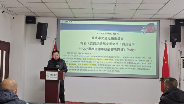 總經(jīng)理唐云忠首先傳達(dá)上級部門及公司各項文件精神。傳達(dá)了渝交便函〔2025〕119 號重慶市交通運(yùn)輸委員會轉(zhuǎn)發(fā)《交通運(yùn)輸部安委會關(guān)于福建漳州“1·16”客車自燃險情的警示通報》的通知;傳達(dá)了渝交便函〔2025〕128 號重慶市交通運(yùn)輸委員會轉(zhuǎn)發(fā)《交通運(yùn)輸部安委會關(guān)于四川巴中“1·22”道路運(yùn)輸事故的警示通報》的通知;傳達(dá)了渝北道運(yùn)〔2025〕6號重慶市渝北區(qū)道路運(yùn)輸事務(wù)中心關(guān)于近期兩起道路交通事故的警示通報暨進(jìn)一步加強(qiáng)春節(jié)春運(yùn)期間安全生產(chǎn)工作的通知;傳達(dá)了渝北道運(yùn)〔2025〕7號重慶市渝北區(qū)道路運(yùn)輸事務(wù)中心關(guān)于切實(shí)做好春運(yùn)后半段道路運(yùn)輸暨復(fù)工復(fù)產(chǎn)復(fù)運(yùn)安全工作的通知;傳達(dá)了渝北交〔2025〕9 號重慶市渝北區(qū)交通運(yùn)輸委員會關(guān)于對 2024 年度全區(qū)交通運(yùn)輸行業(yè)安全生產(chǎn)工作成績突出單位予以激勵的通報;傳達(dá)了重慶協(xié)通國際物流有限公司《安全生產(chǎn)獎懲制度》等文件精神,要求全體員工認(rèn)真按照上級文件精神做好安全生產(chǎn)各項工作。
