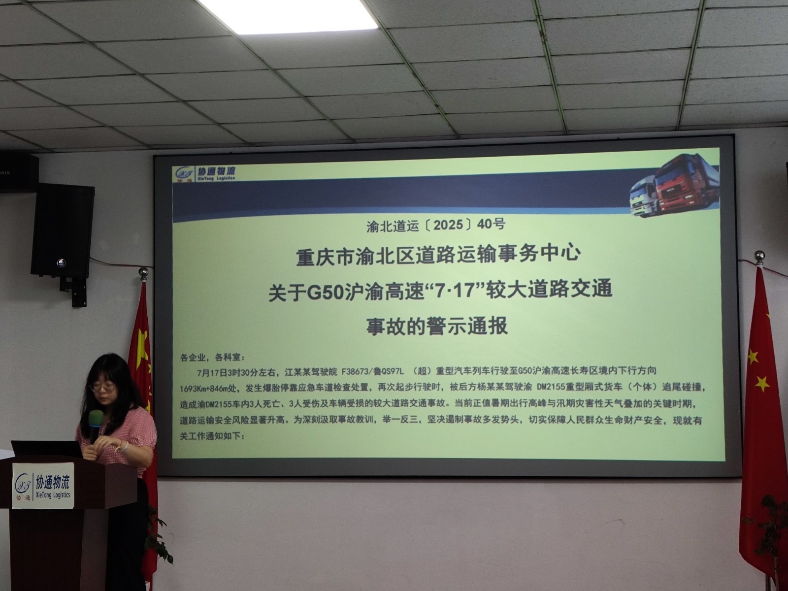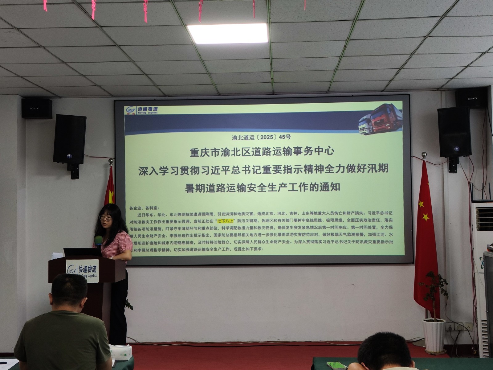 2025年8月16日,重慶協(xié)通國(guó)際物流有限公司月度員工安全教育培訓(xùn)會(huì)在公司三樓會(huì)議室召開(kāi),公司總經(jīng)理唐云忠主持會(huì)議并講話。